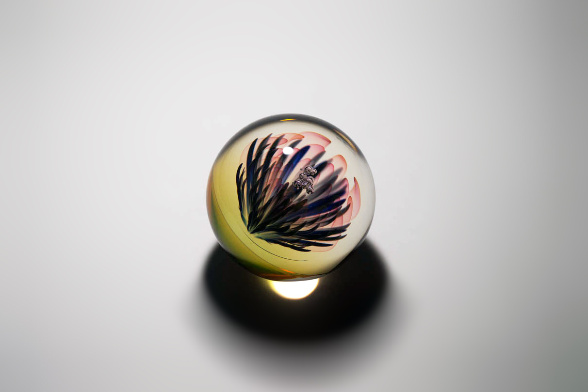 アートマーブルとは、穴が空いていない球体状の作品のこと。観賞用のアート作品として、多くの作家や工房が個性あふれる作品を制作してきました。近年は見るものを魅了する作品が続々と作り出され、日本でも蒐集品としての評価が高まってきており、コレクションを楽しむ方が増えています。国内外7名のアーティスト作品をどうぞご覧ください。