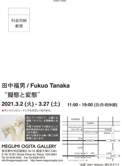 同スペース内にて、土屋仁応個展「キメラ」を開催致します。今展では始めたの試みとして新作彫刻約6点に加え絵画3点も展示。新たな視点から唯一無二の作家像に迫ります。